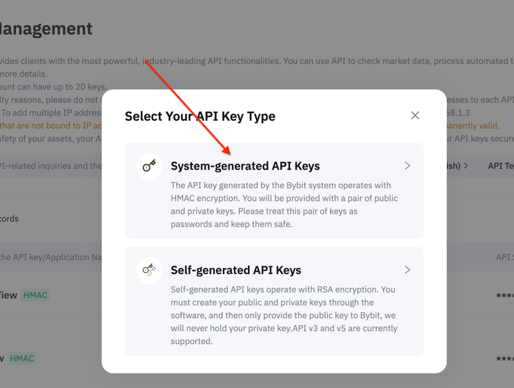 В появившемся окне выбираем «System-generated API Keys»: